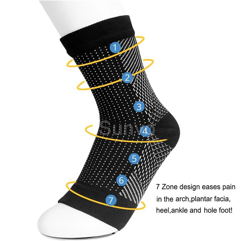 1.RECOMMENDED DESIGN – The Plantar Fasciitis Sock and ankle compression sleeve are short compression socks that help improve circulation, reduce inflammation, and assist the healing process. Not only do they provide Plantar Fasciitis Support but they also help with other foot disorders such as Edema, Achilles Heel, & Ankle Spurs.